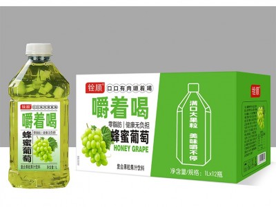 銓順嚼著喝蜜蜂菠蘿復合果粒果汁飲料