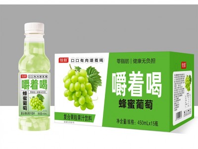 銓順嚼著喝蜜蜂葡萄復合果粒果汁飲料